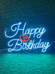 Happy Birthday Neon Light – Warm White LED Party Sign Premium warm white neon sign for elegant birthday décor with soft glowing light.